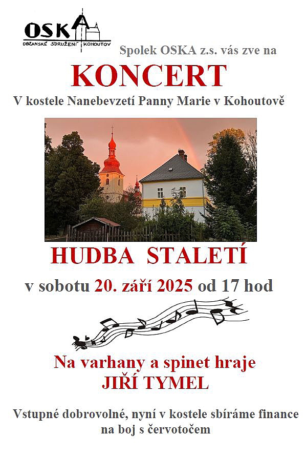 Srdečně vás zveme na krásný hudební podvečer v historickém kostele Nanebevzetí Panny Marie v Kohoutově!