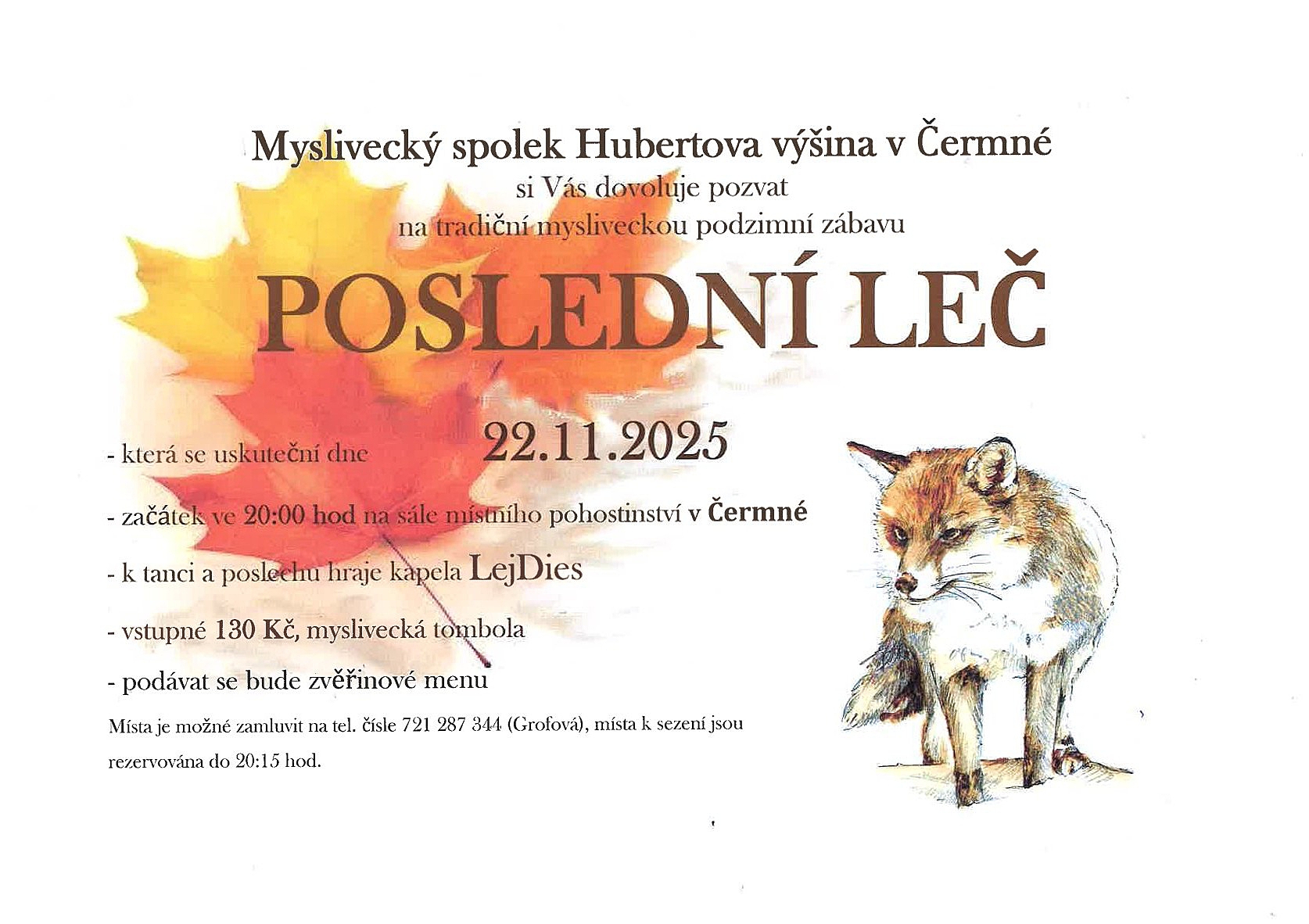 Přijďte si zatančit, posedět i vyhrát skvělé ceny z myslivecké tomboly.