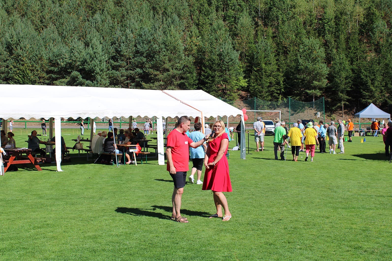 Základním kamenem celého odpoledne je vytvořit v areálu pro všechny seniory komfortní sezení ve stínu. A věřte, je to pěkný oříšek. Nezištně ho pomáhají rozlousknout Sbory dobrovolných hasičů z Úpice a Havlovic, které ve svém volném čase přivážejí, staví, bourají, a zase odvážejí. Stany i lavice. Stany zdarma letos zapůjčila i Obec Havlovice.