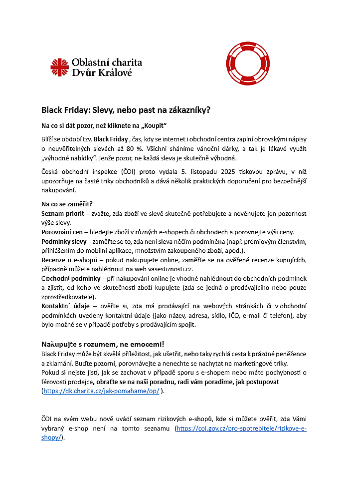 Pokud si nejste jistí, využijte zdarma Občanskou poradnu při Charitě ČR.