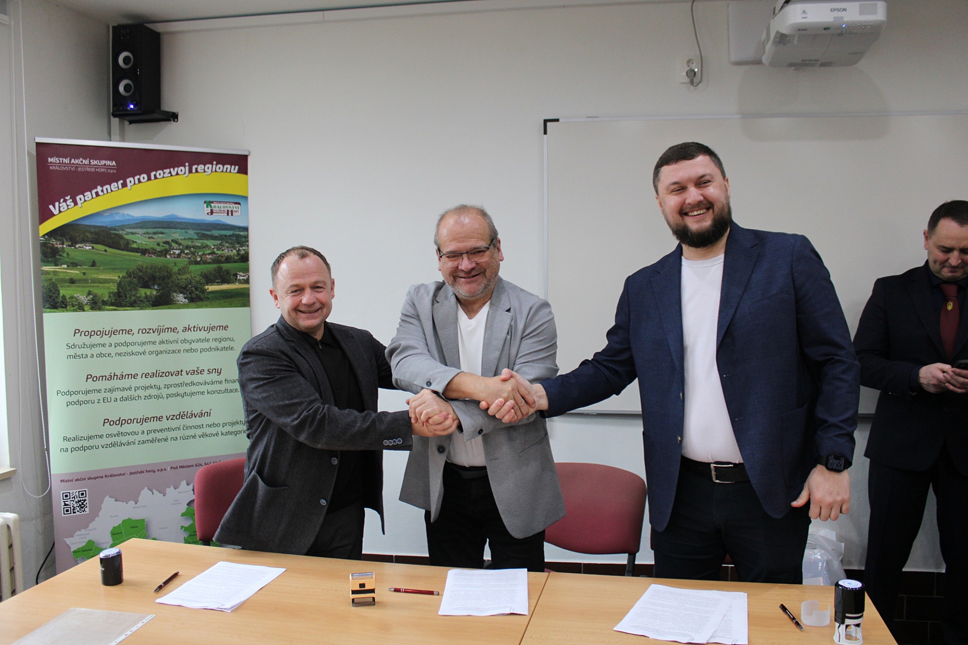 Od jara letošního roku MAS Království – Jestřebí hory, o.p.s. koordinuje přípravu tohoto dokumentu s ukrajinskou stranou a Michailo Labou, poslancem Národní Rady Ukrajiny. Současně probíhá komunikace se starosty v území MAS a jeho kolegy. Memorandum má vizionářský charakter a připravuje se na mírovou budoucnost Ukrajiny. Jsme rádi, že jsme našli šest českých obcí, které podpořilo toto symbolické gesto. Tato výjimečná událost byla součástí návštěvy zástupců ukrajinských regionů a jejich kolegů, při které ve dnech 8. - 10. prosince 2025 navštívili náš region.