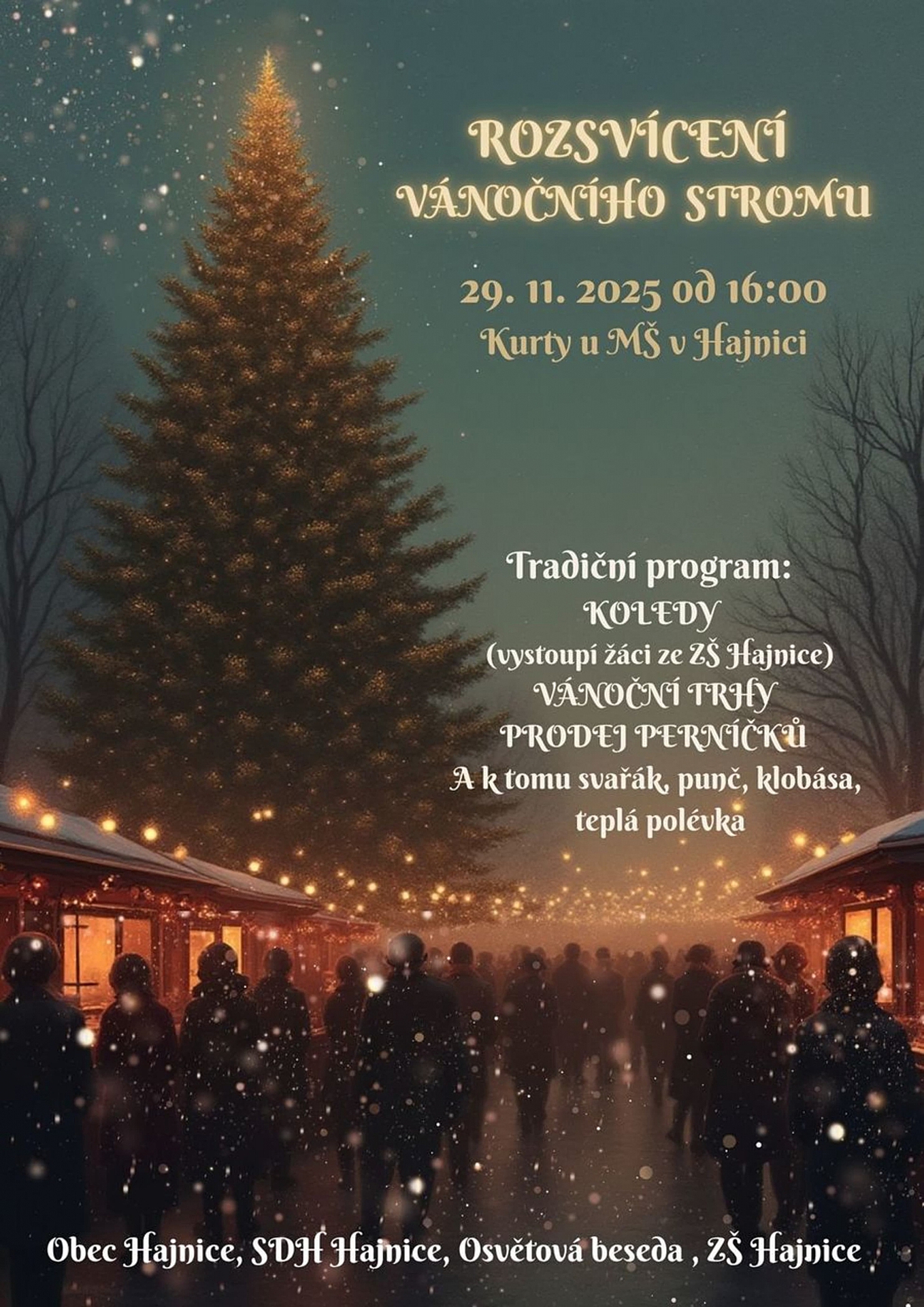 Hajnice vás srdečně zve na tradiční rozsvícení vánočního stromu, které se uskuteční 29. 11. 2025