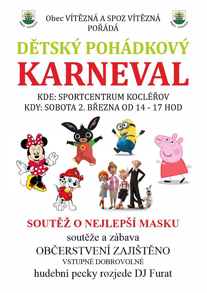 V sobotu 2. 3. 2024 se můžete těšit na dětský karneval ve Sportcentru Kocléřov