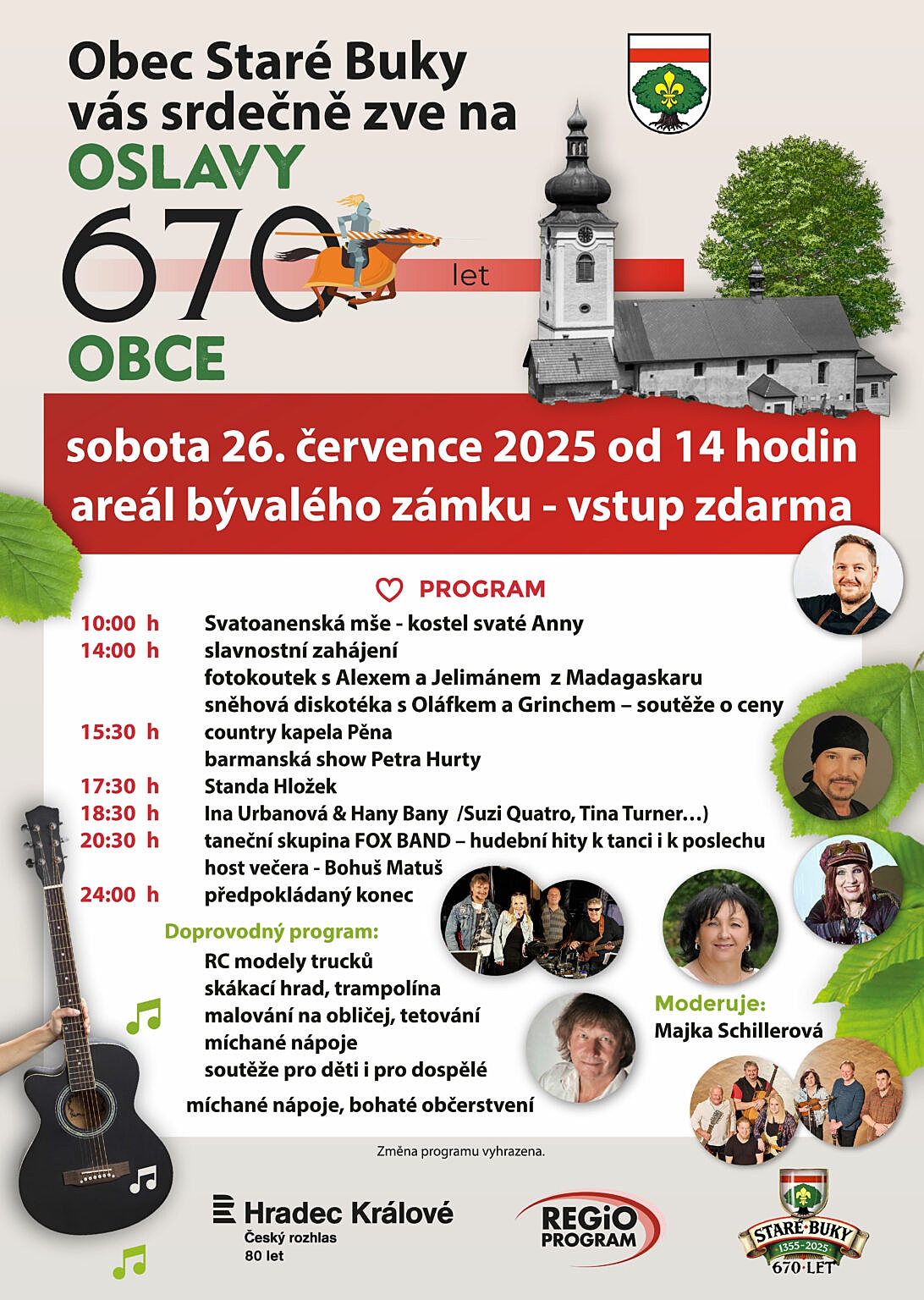 Sobota 26. července 2025, od 14 hodin, areál bývalého zámku. Vstup je zdarma!