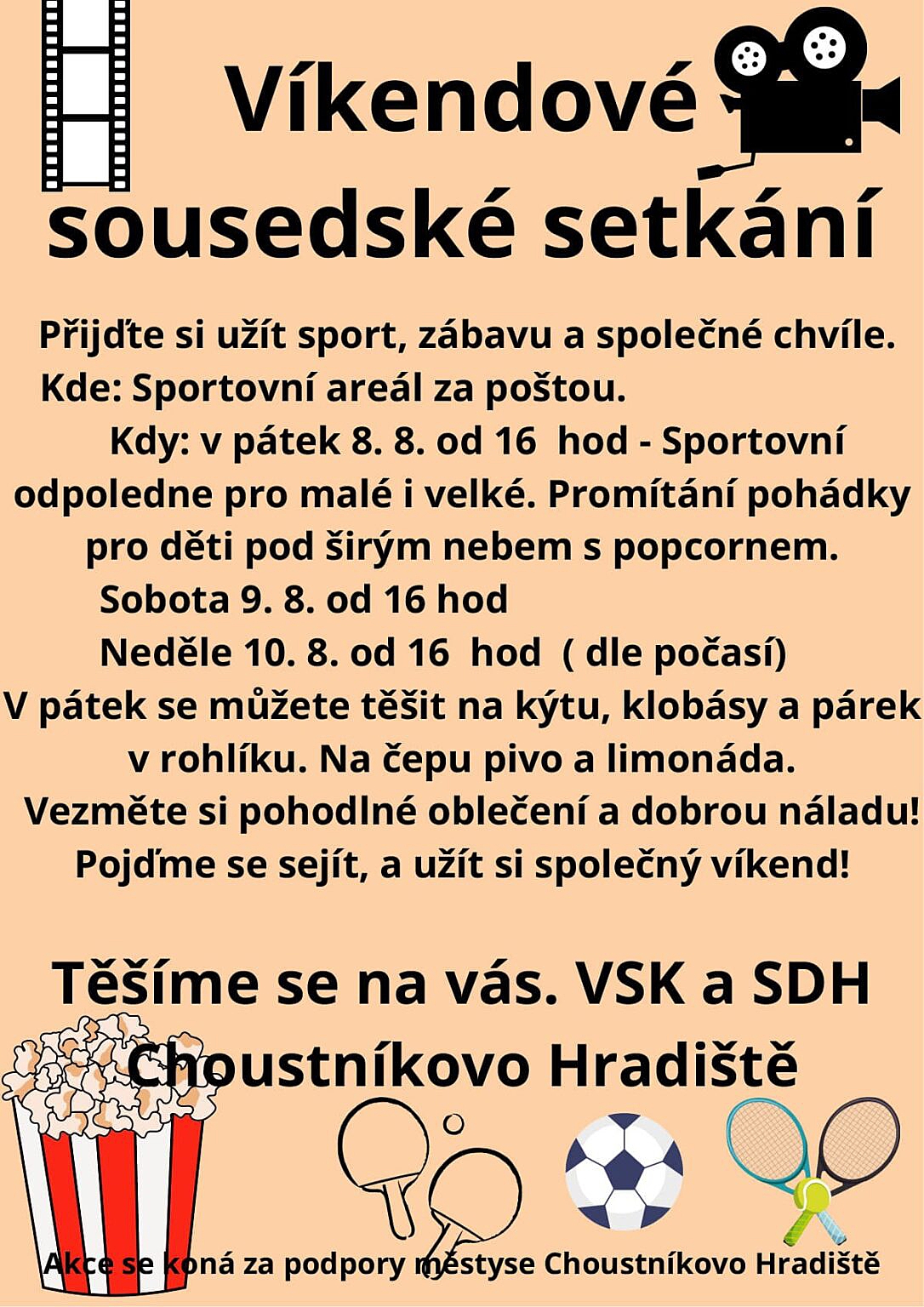 Čeká vás promítání pohádky, sportovní hry a občerstvení, které možná donutí i vaše chuťové buňky tancovat s radostí.
