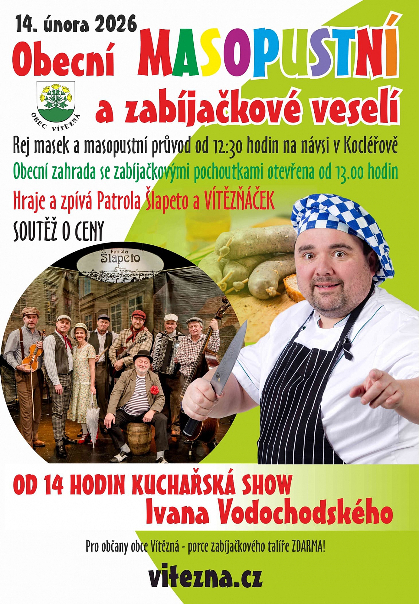 Obec Kocléřov vás srdečně zve na obecní masopustní a zabijačkové veselí, které se uskuteční na návsi v Kocléřově.