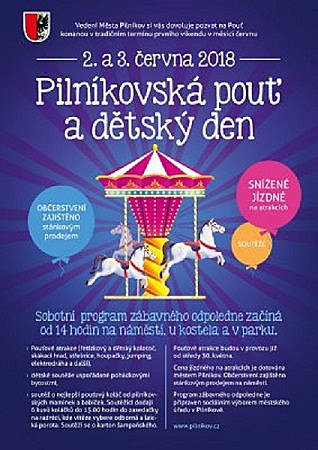 Vedení města Pilníkov si vás dovoluje pozvat na Pouť konanou v tradičním termínu prvního víkendu v měsíci červnu. Sobotní program zábavného odpoledne začíná od 14:00 hodin na náměstí, u kostela a v parku. Těsit se můžete na pouťové atrakce, dětské soutěže uspořádáné pohádkovými bytostmi nebo soutěž o nejlepší pouťový koláč. Pouťové atrakce budou v provozu již od středy 30. května, cena jízdného na atrakcích je dotována městem Pilníkov. Více informací na plakátu a webu města Pilníkov.