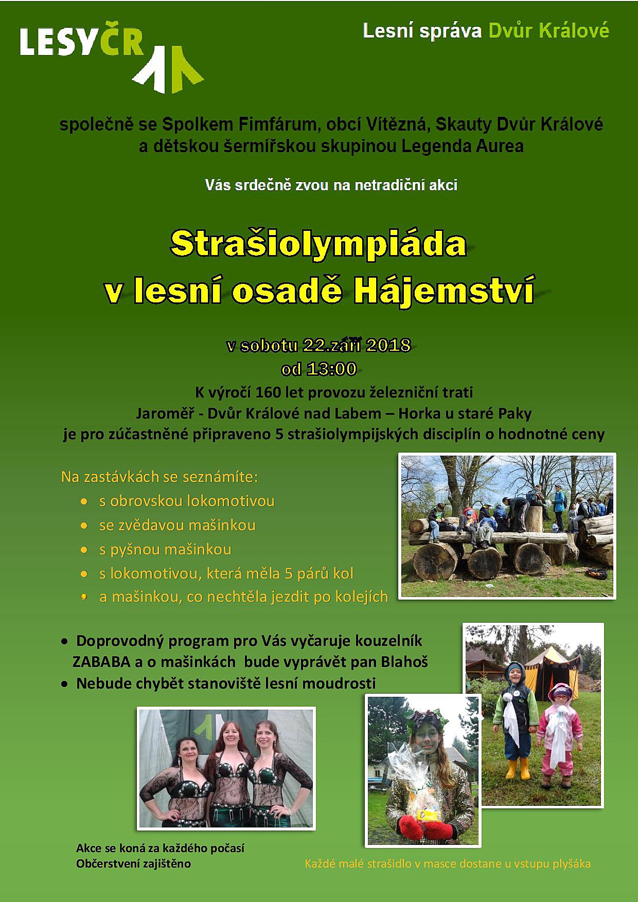 V lesní osadě Hájemství ve Vítězné v sobotu 22. 9. 2018 se koná Strašiolympiáda.