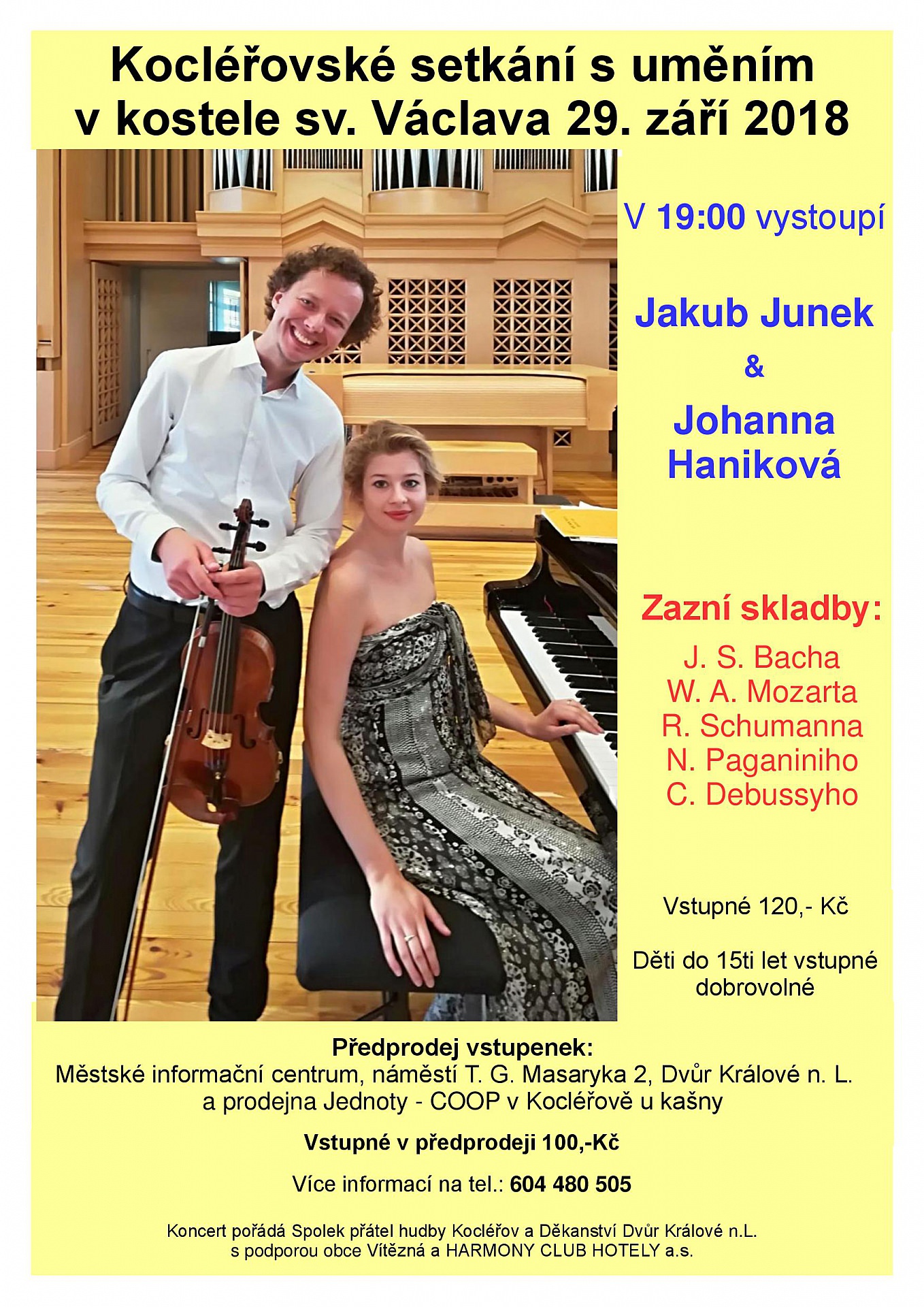 V sobotu 29. září 2018 od 19:00 v kostele sv. Václava vystoupí Jakub Junek a Hohanna Haniková.