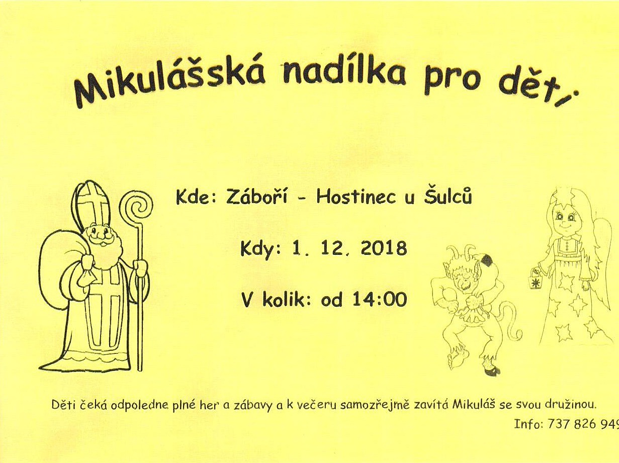 V sobotu 1. prosince 2018 od 14:00 se v Hostinci u Šulců v obci Vítězná koná Mikulášská nadílka pro děti.