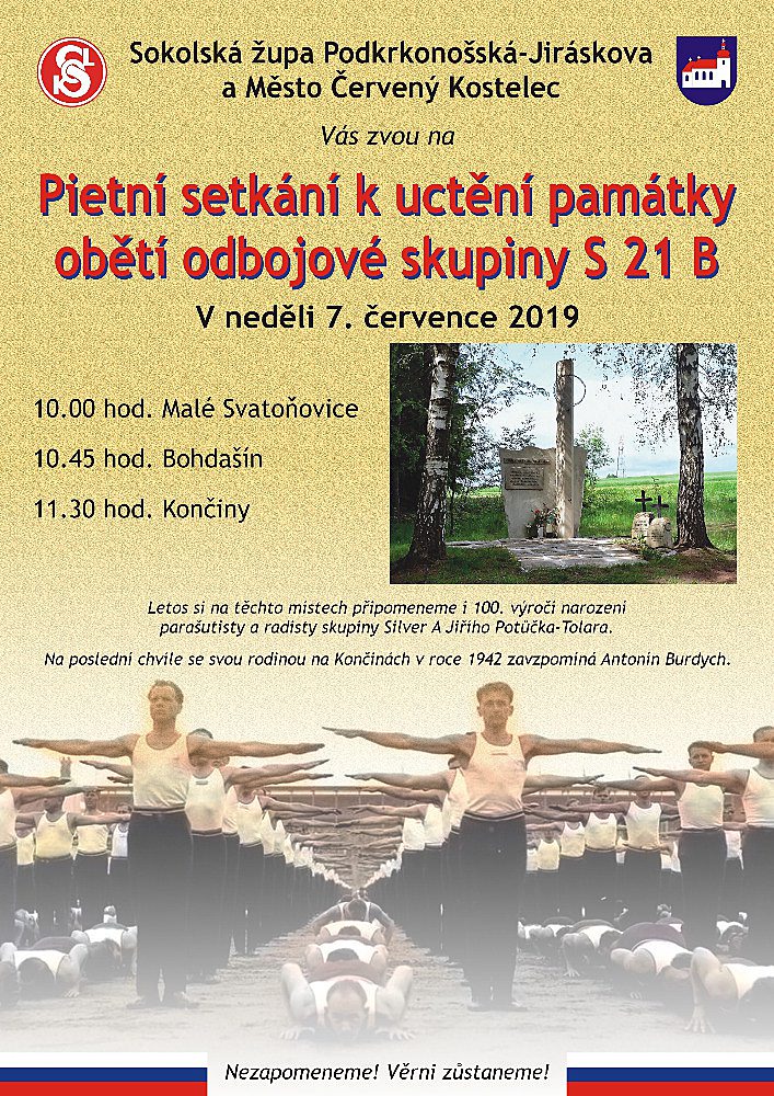 v sobotu 29. 6. 2019 jsme si připomněli 100 výročí narození jednoho z největších hrdinů II. sv. války Jiřího Potůčka-Tolara v jeho rodných Břasech. Vyvrcholení bude tuto neděli 7. července 2019 na Kosteleckých Končinách. Předcházet bude vzpomínková akce v Malých Svatoňovicích a Bohdašíně.