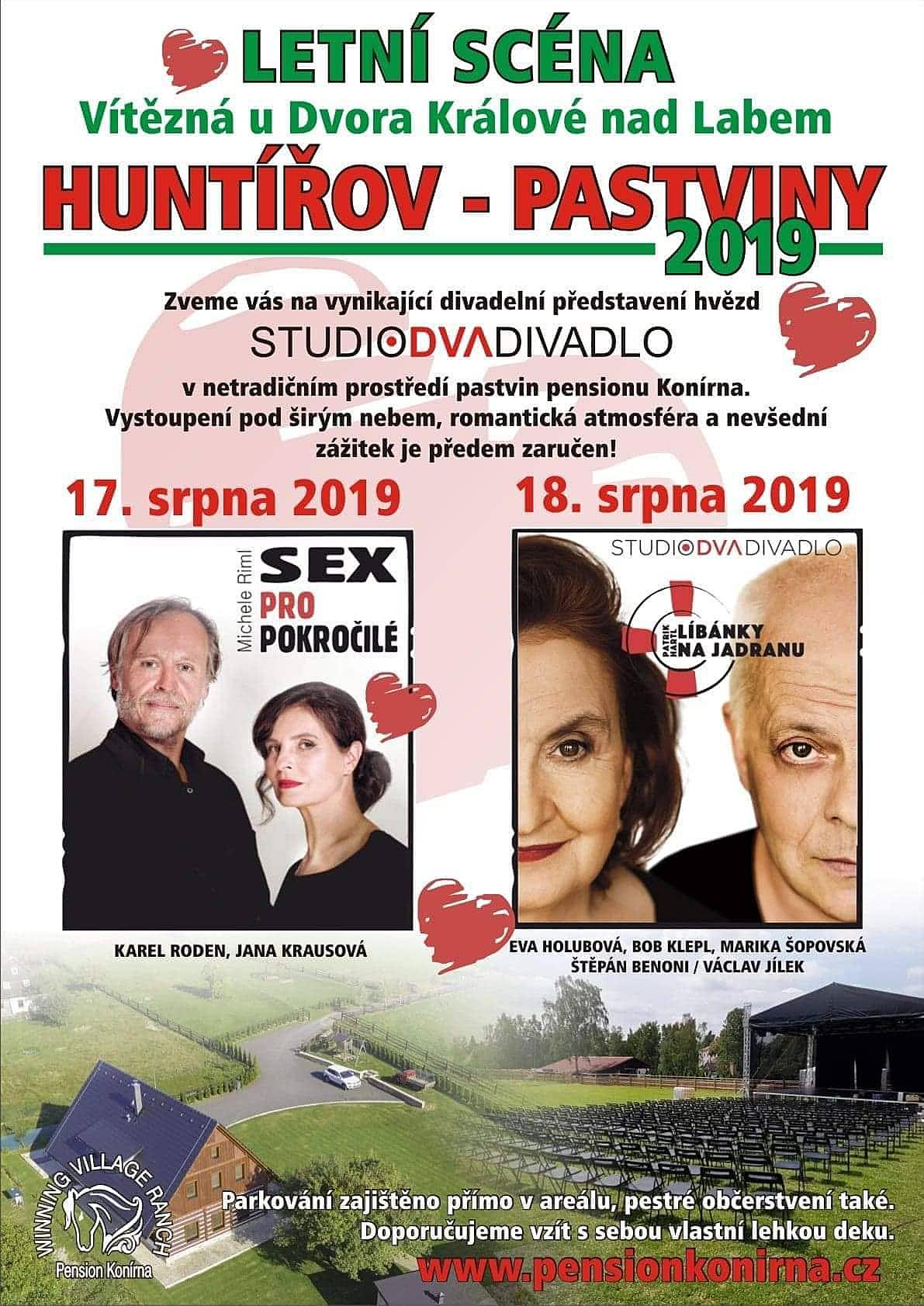 Zveme vás na vynikající divadelní představení hvězd Studio Dva Divadlo v netradičním prostředí pastvin pensionu Konírna. Vystoupení pod širým nebem, romantická atmosféra a nevšední zážitek je předem zaručen! Další informace naleznete na plakátu a webu pensionu Konírna.