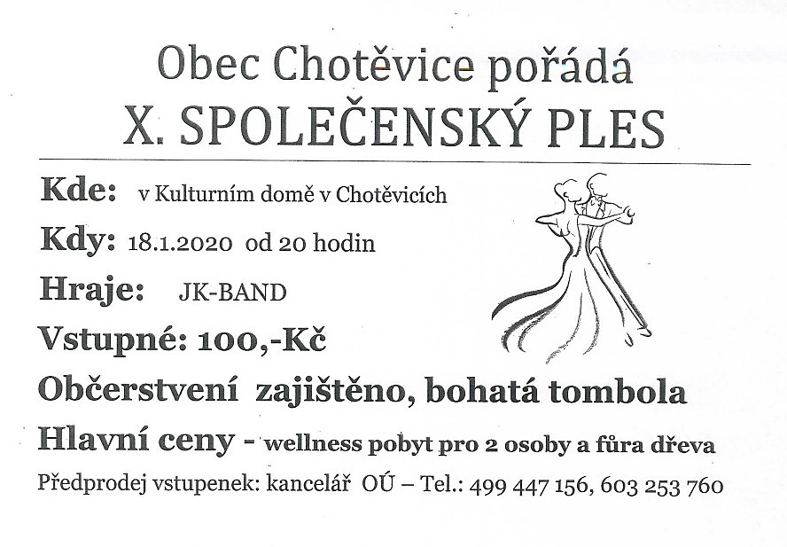 Obec Chotěvice pořádá X. společenský ples