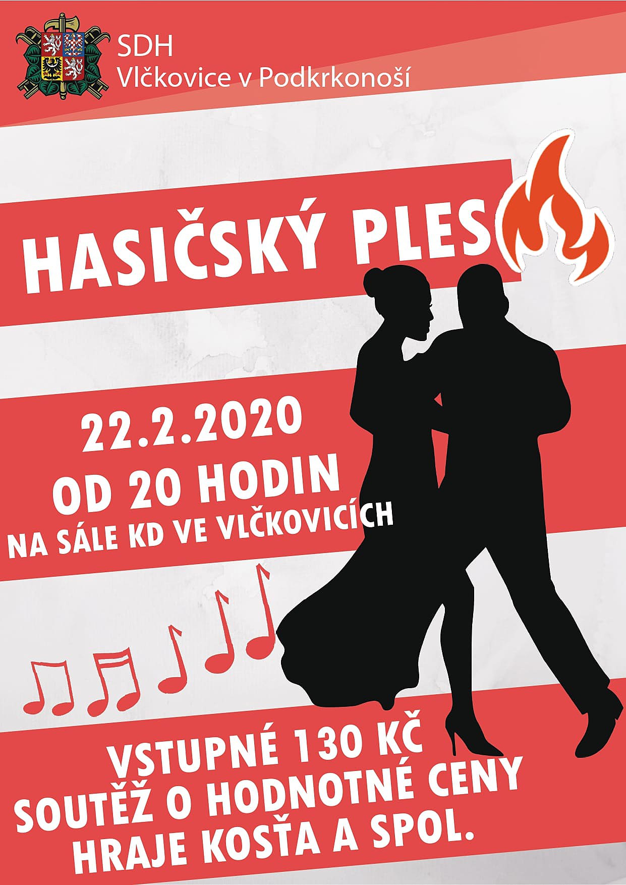 Hasičský ples se koná 22. 2. 2020 od 20:00 hodin na sále kulturního domu ve Vlčkovicích v Podkrkonoší. Další informace na plakátě.