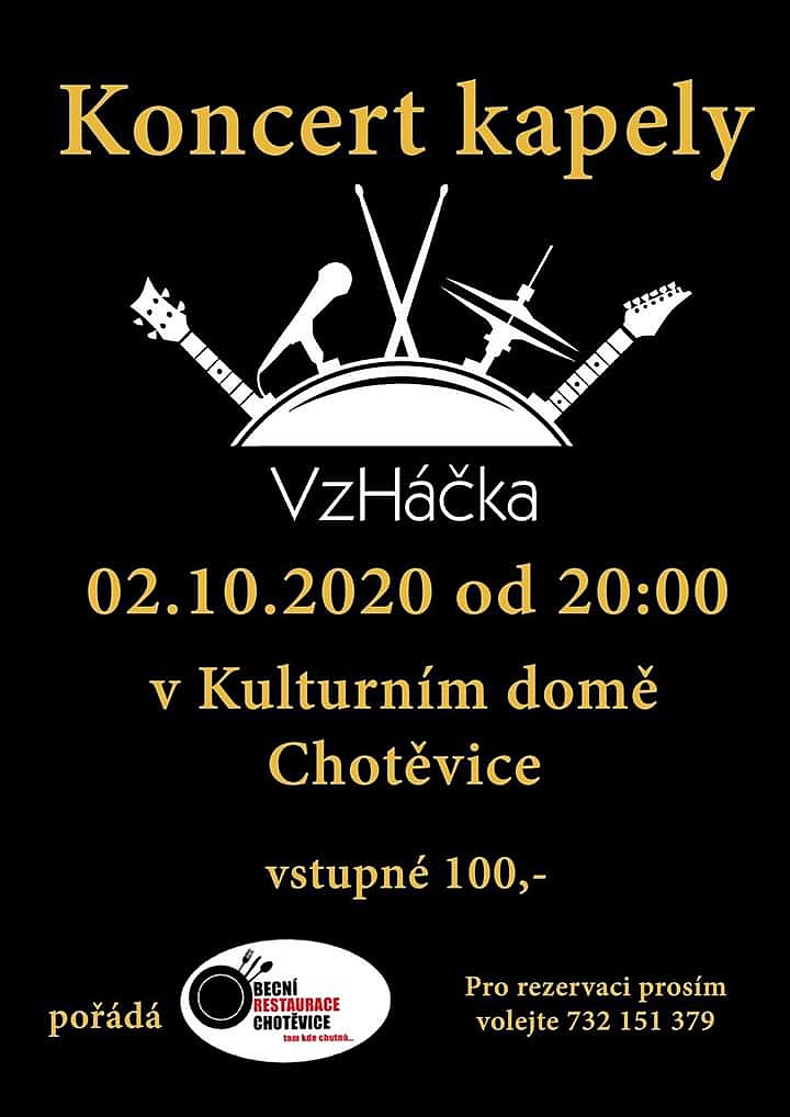 Začátkem října se v Kulturním domě v Chotěvicích představí skupina VzHáčka. Vstupné 100,- Kč, možnost rezervace. Více info na plakátě.