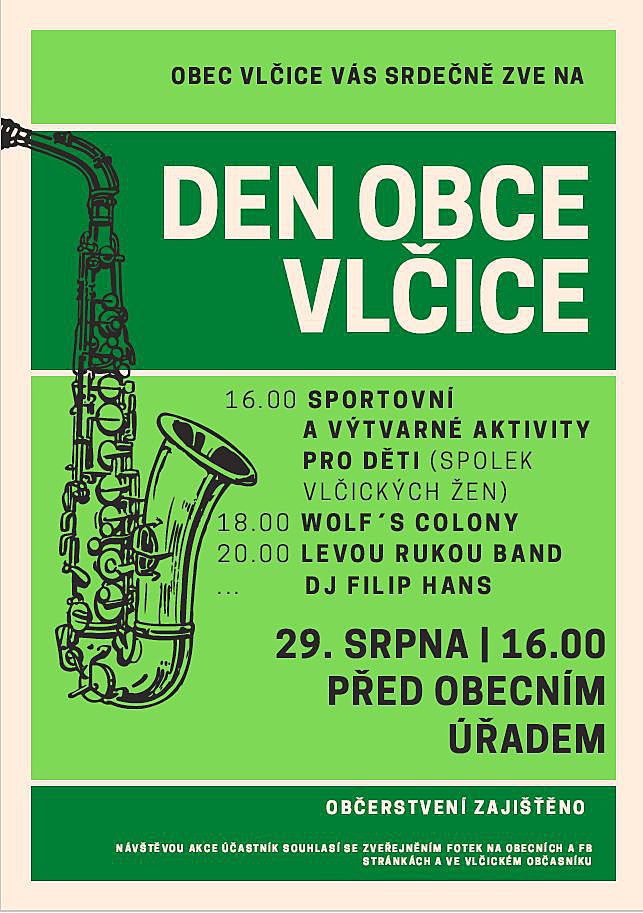 Obec Vlčice zve na Den obce. Zajištěn odpolední program pro děti a večerní zábava pro dospělé. Více info na plakátě.