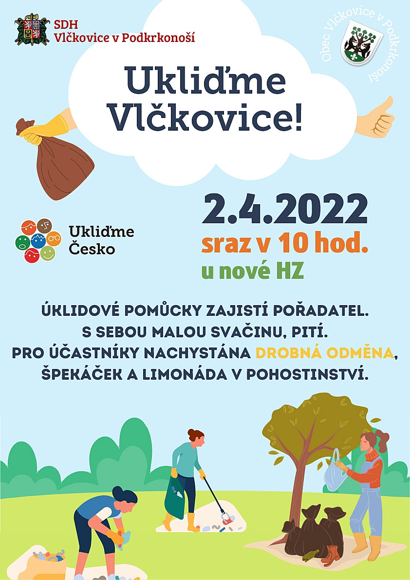 Jarní úklid se koná v sobotu 2. dubna 2022. Pytle a rukavice zajištěny.