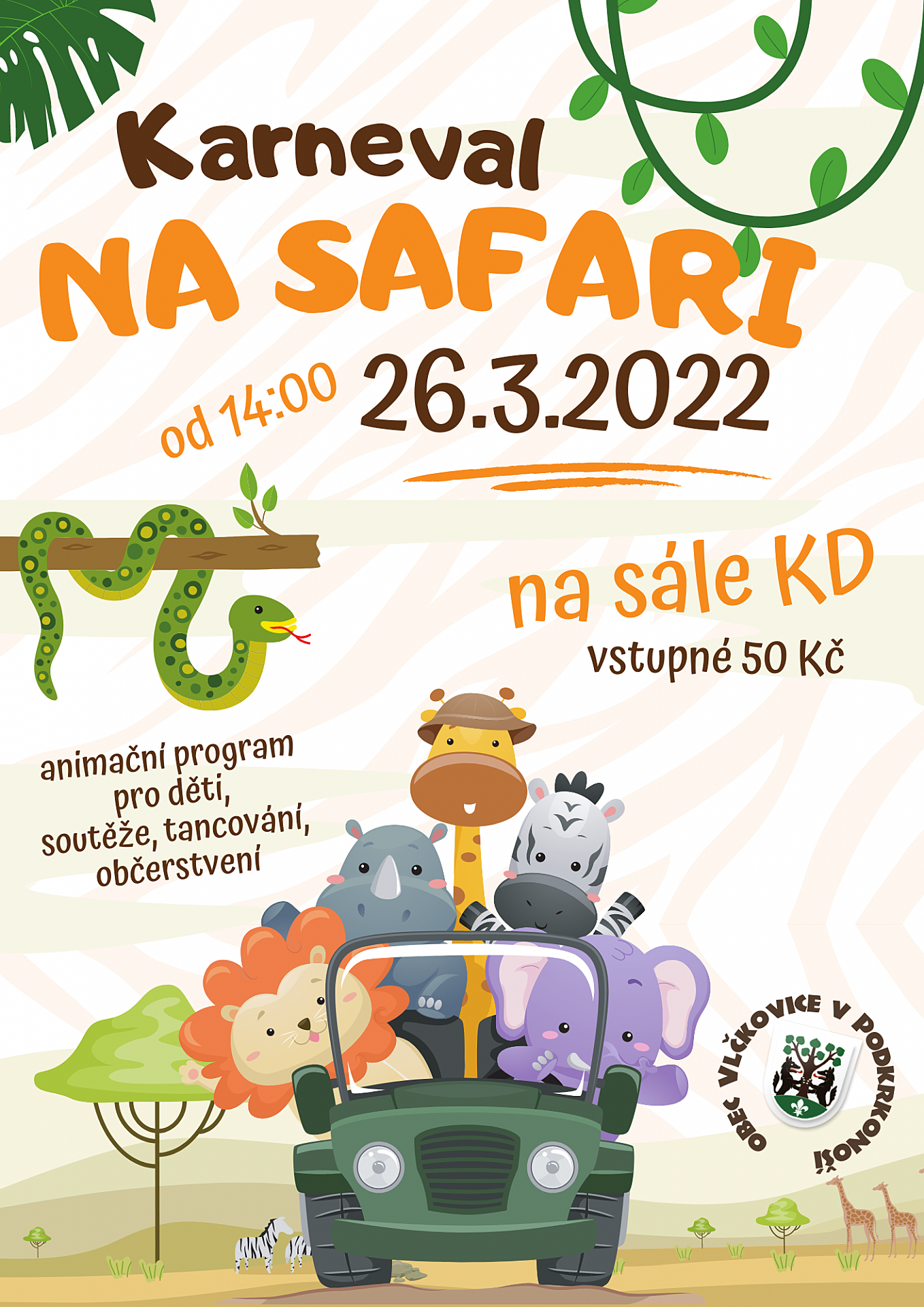 Myslíme i na nejmenší - po velkém minulém úspěchu Vám opět přinášíme Dětský karneval, tentokrát s tématikou exotického safari. Vydejte se s námi na výpravu "za zvířaty" do Afriky, kde si mimo jiné děti zahrají různé hry, zasoutěží si, zatancují si a dostanou i hezké drobné odměny.