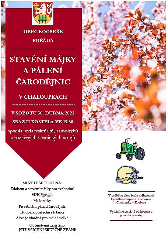 Obec Kocbeře zve na vystoupení mažoretek, spanilou jízdu domácích traktůrků, hudbu k poslechu i tanci.