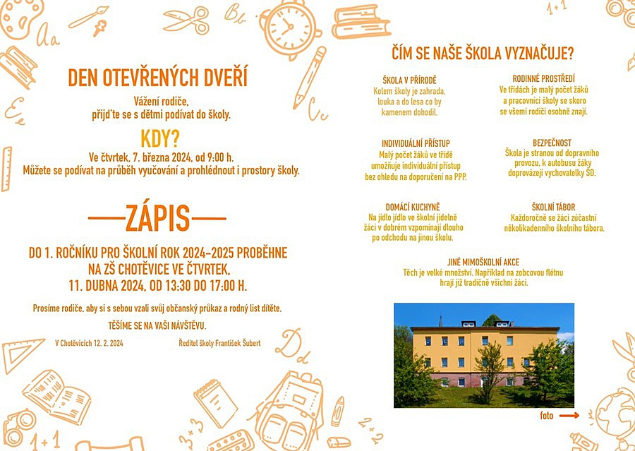 Chcete nahlédnout do běžně nepřístupných míst ZŠ Chotěvice a seznámit se nejen s historií, současností a nabídkou služeb školy?