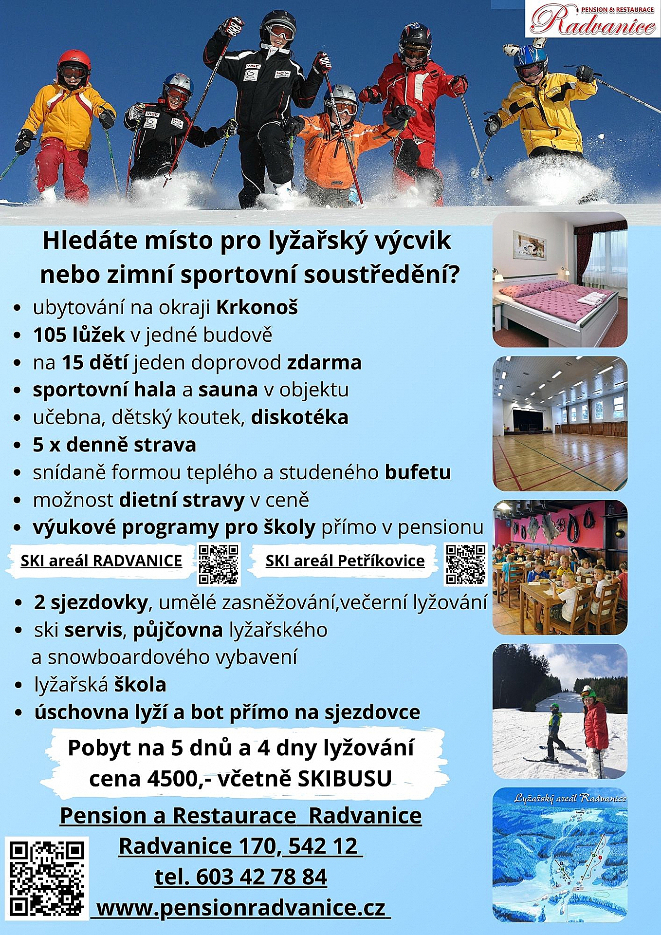 V blízkém okolí je pak mimo jiné sjezdovka se dvěma vleky, půjčovnou a skiservisem. Okolí Radvanic pak skýtá možnosti atraktivních výletů do Adršpachu, dolu Bohumír nebo na blízké jestřebohorské rozhledny.