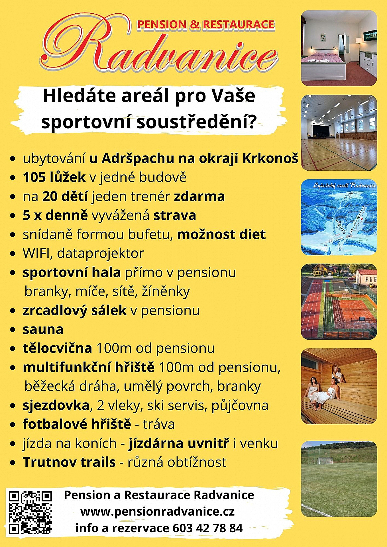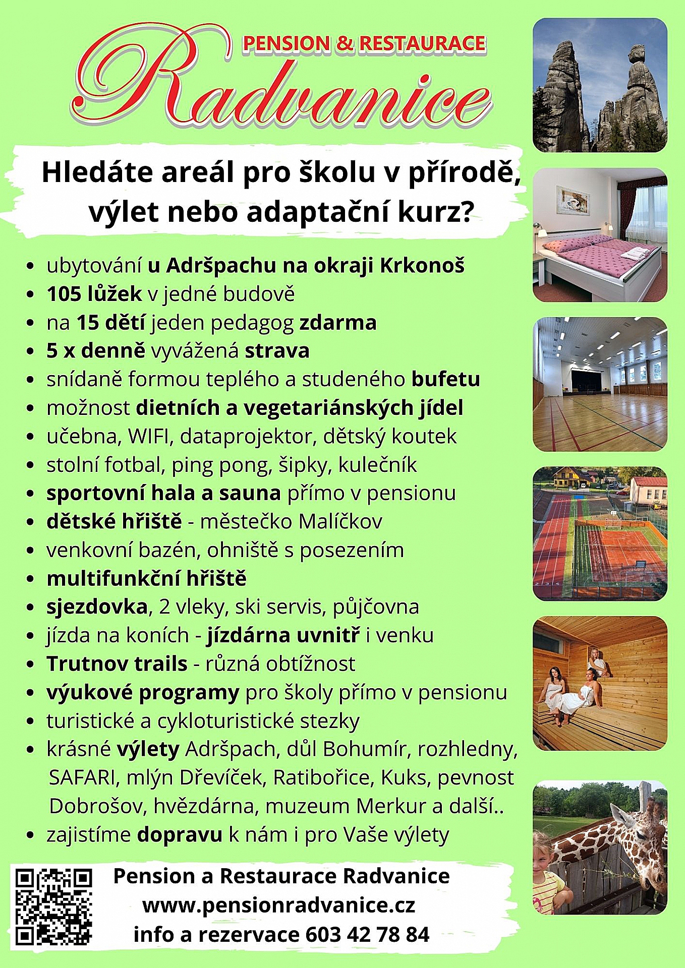 Pension a restaurace v Radvanicích bude také ve čtvrtek 10. října 2024 hostit konferenci Vzdělávání na Trutnovsku, kterou bude opět pořádat realizační tým projektu Místní akční plán (MAP) Trutnovsko IV.