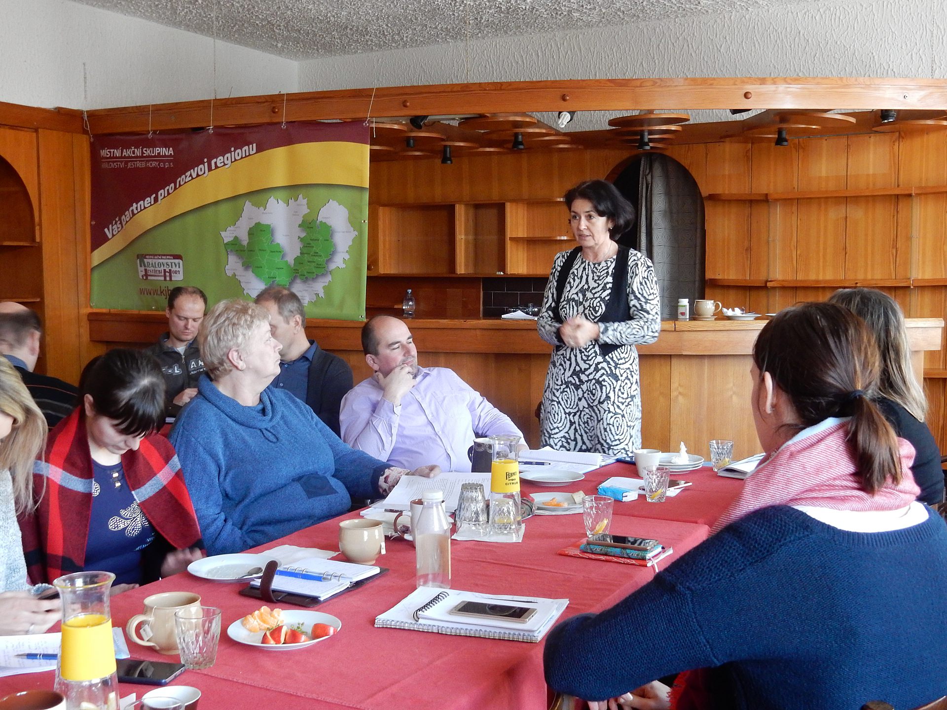 Hlavního slova se ujala regionální koordinátorka projektu paní Ivana Červinková a seznámila přítomné s body programu. První na seznamu jednání bylo vyhodnocení dotazníkového šetření mezi starosty, které bylo významnou zpětnou vazbou vypovídající o efektivní spolupráci s CSS.