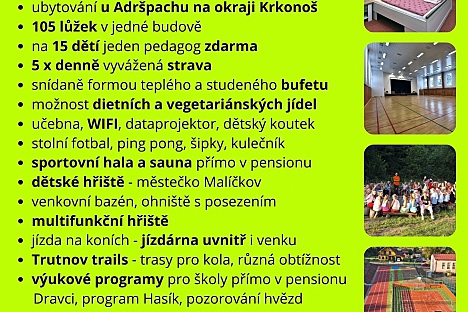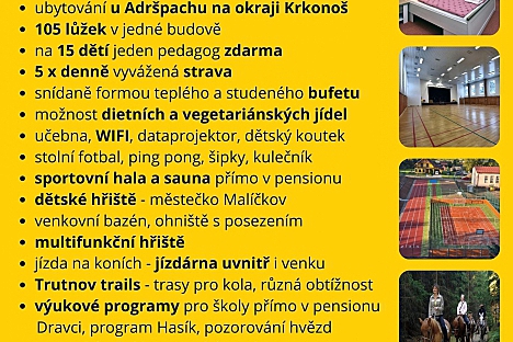 Převážná část programu bude probíhat v Pensionu Radvanice, který má školám rozhodně co nabídnout – bližší informace jsou na přiložených prospektech.