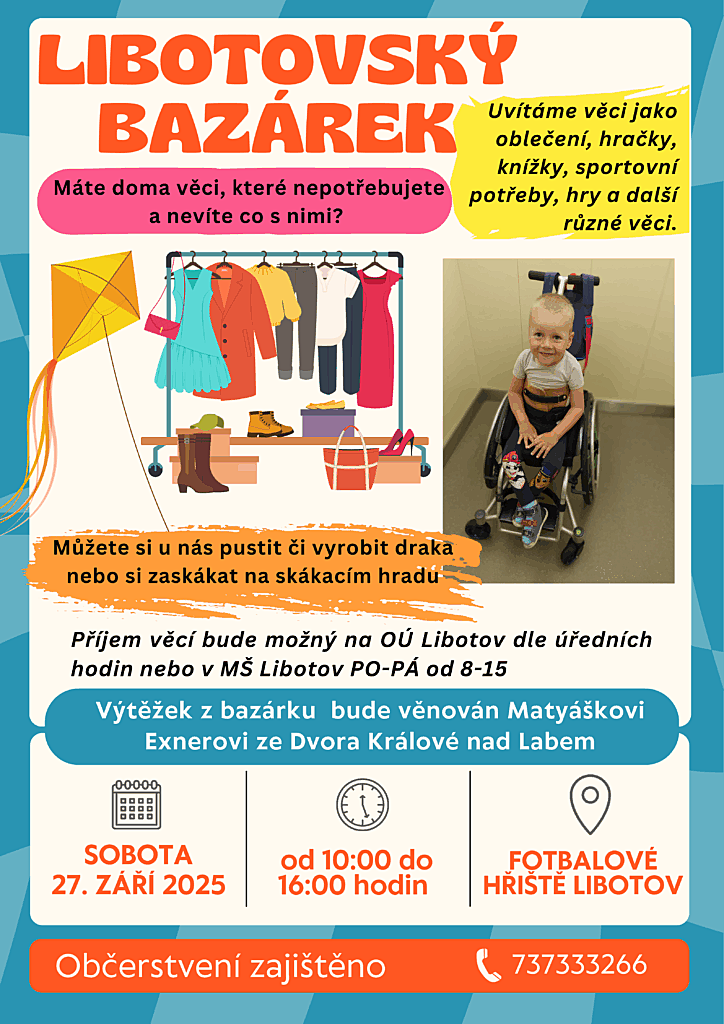 Místo sběru: Mateřská škola Libotov, OÚ Libotov, prodej fotbalové hřiště Libotov.