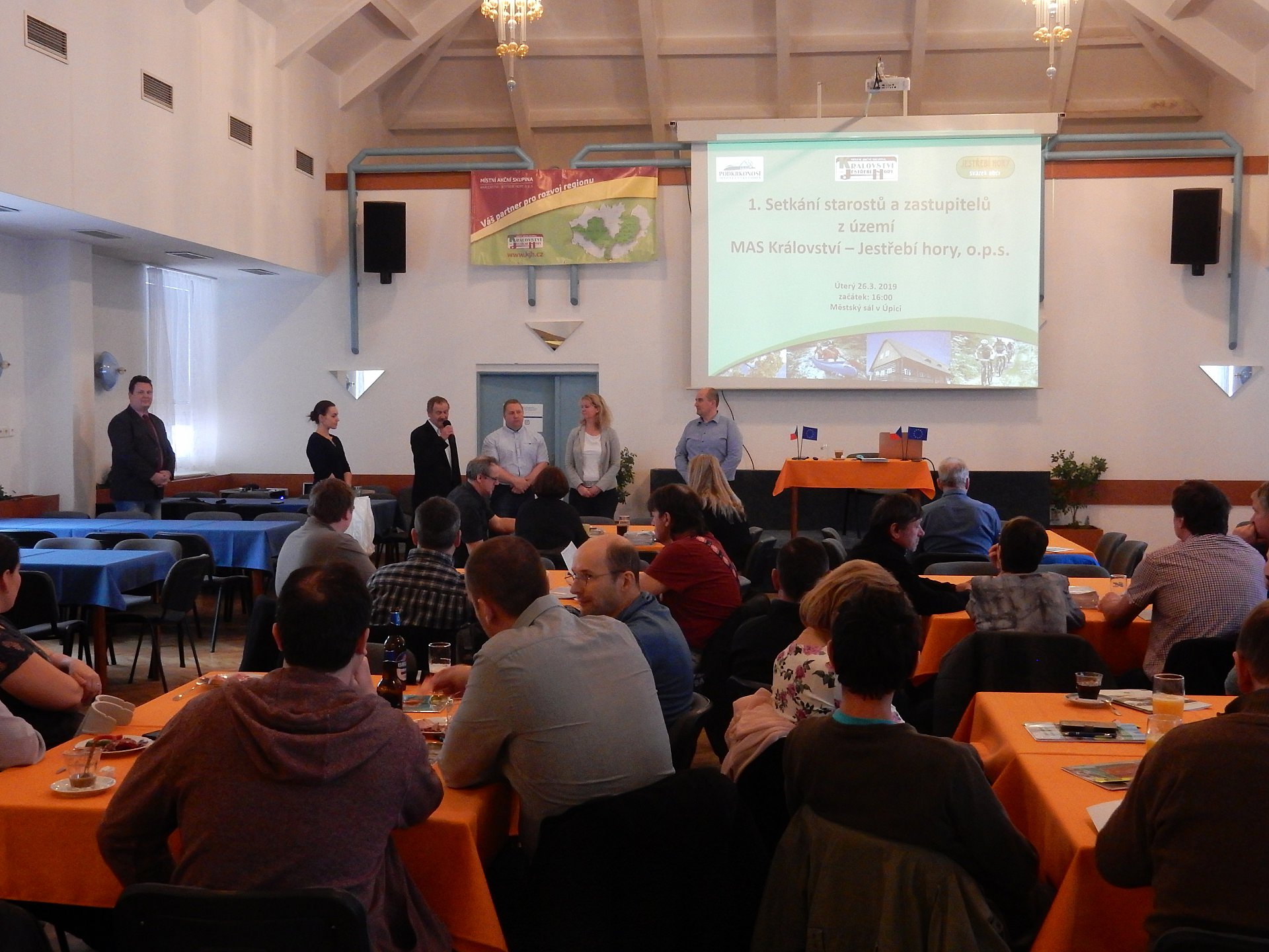 Městský sál v Úpici hostil v úterý 26. března 2019 historicky první setkání starostů a zastupitelů obcí z území Místní akční skupiny Království – Jestřebí hory o.p.s. (MAS KJH o.p.s.). Myšlenka setkání zástupců 24 obcí byla vyvolána jak loňskými komunálními volbami, které přinesly mnohé změny, tak především snahou o společnou diskuzi vedoucí k rozvoji regionu. Téměř čtyřicítka starostů a zastupitelů se tak sešla k formálnímu programu i přátelskému posezení a diskuzi. Více informací se dočtete v tiskové zprávě, která je v příloze. Dalšími přílohami jsou prezentace MAS KJH, prezentace „Zákon o obcích v kostce“ a Pozvánka s programem. Fotografie z akce si můžete prohlédnout zde.