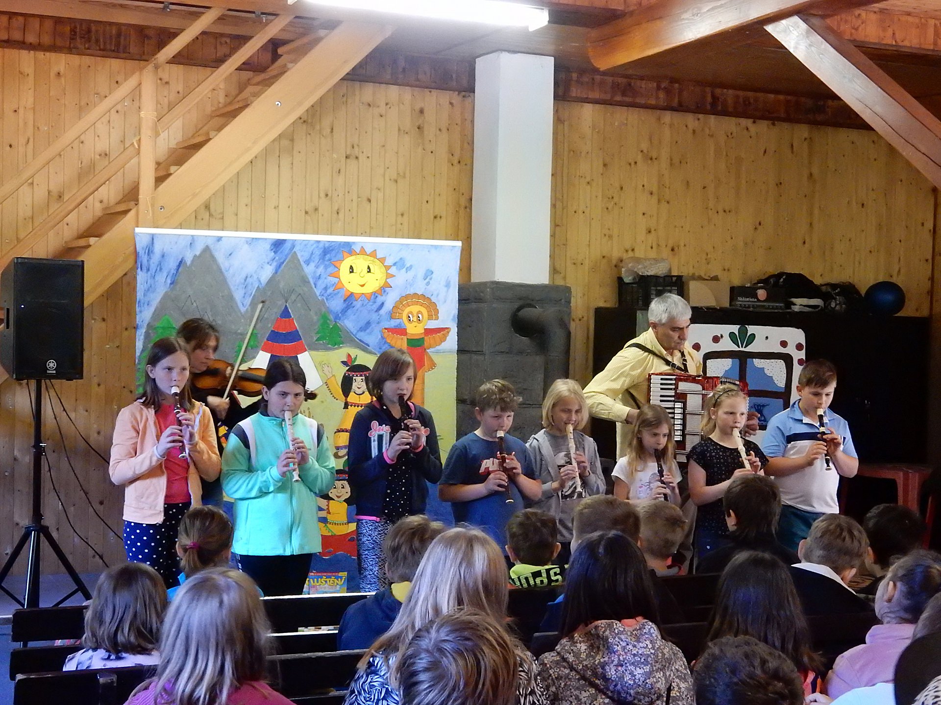 Akci zahájil předseda Společenství obcí Podkrkonoší Petr Hrubý, který děti i jejich pedagogický doprovod přivítal a seznámil je s pestrým programem. V jeho začátku se představili žáci ZŠ Chotěvice, kteří předvedli známou scénku s názvem „Kdo je hloupější“. Za moment už to byly děti ze ZŠ v Kocbeřích, jejichž hraný a zpívaný příběh seznámil diváky se vznikem názvu jejich obce. Na scénu se pak vrátily chotěvické děti a na flétny za doprovodu houslí a tahací harmoniky svých učitelů zahrály tři písničky. Program dále pokračoval vystoupením usměvavé „Indiánky“ v podání Mgr. Anny Pávkové, která všechny zapojila do své profesionální show, kde všichni tančili, zpívali a někteří i soutěžili. Z usměvavých tváří dětí i dospělých bylo patrné, že se všichni dobře baví.