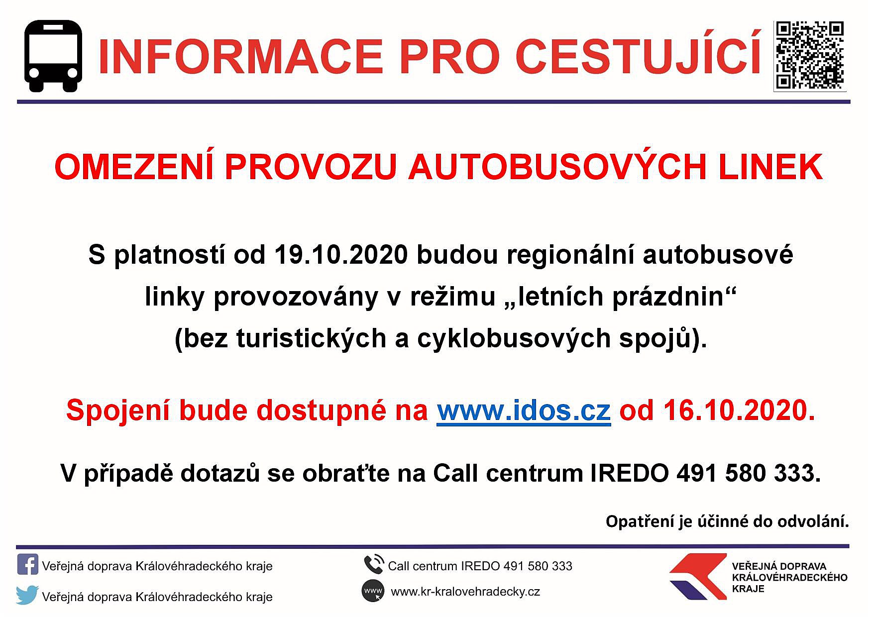 Pro autobusové linky přichází režim letních prázdnin. Více informací na přiloženém plakátě. Opatření je účinné do odvolání.