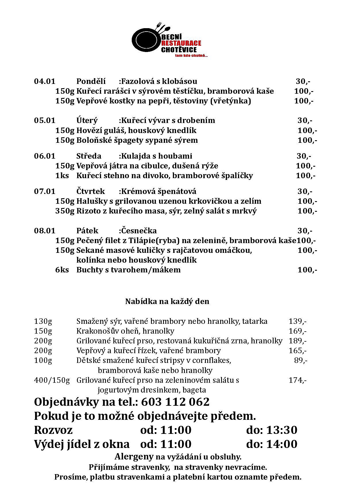 Jídelní lístek Obecní restaurace Chotěvice 04.01.2021 - 08.01.2021