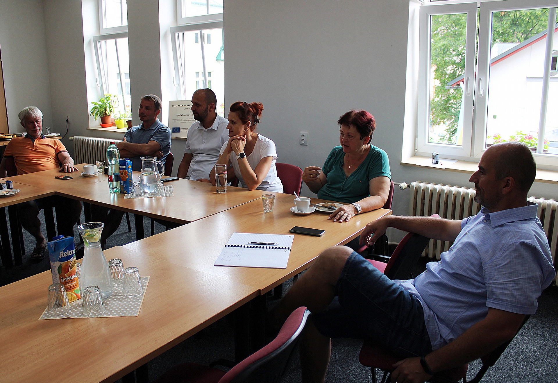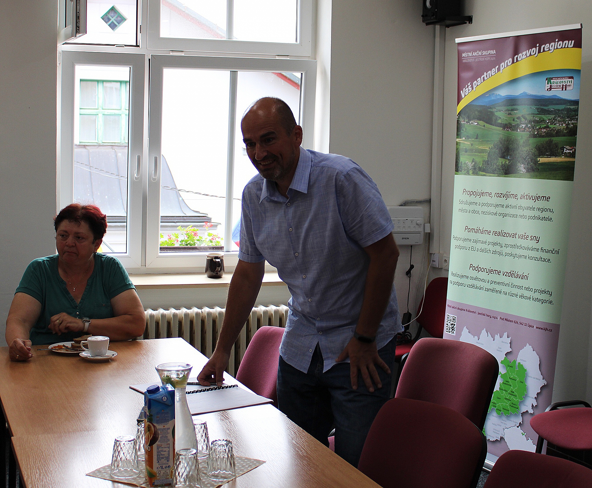 Ředitel MAS Jan Balcar přítomné upozornil na důležité události, které se blíží. Ve čtvrtek 8. září uspořádáme v Havlovicích  tradiční Olympiádu pro starší a dříve narozené. Ve dnech 14. - 16. září pak ve spolupráci s Celostátní sítí pro venkov zorganizujeme pro zájemce inspirativní výjezd na Nymbursko. Zaměřený bude na projekty Programu rozvoje venkova, které cílí na zemědělství nebo cestovní ruch. V sídle MAS byla řeč také o nové výzvě v rámci operačního programu Zaměstnanost. "Otevírá se tu prostor pro práci se seniory, mladými matkami a dalšími cílovými skupinami. Pro každé dvě až tři obce bychom měli místního lídra, přes nějž by se tato problematika řešila," vysvětlil Jan Balcar. Starostky a starostové na úpickém setkání neformálně projednali i další témata. Debatovali například o tom, jak řešit sousedské spory. V nejmenované obci musí dokonce řešit stížnosti na přemnožené komáry. :)